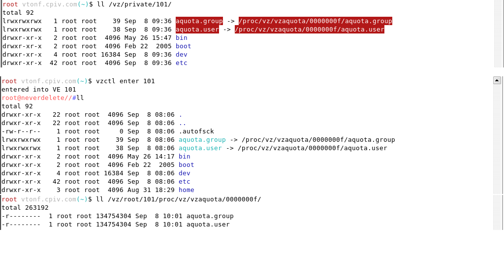 Today i noticed that on one of our VPS servers, the aquota.user and aquota.group files are gone... i mean, they're symlinks to /proc/vz/vzaquota/*/aquota... but... there's nothing in vzaquota.