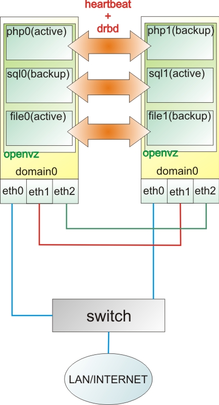 Eth1 = with a crossover cable for heartbeat and DRBD.