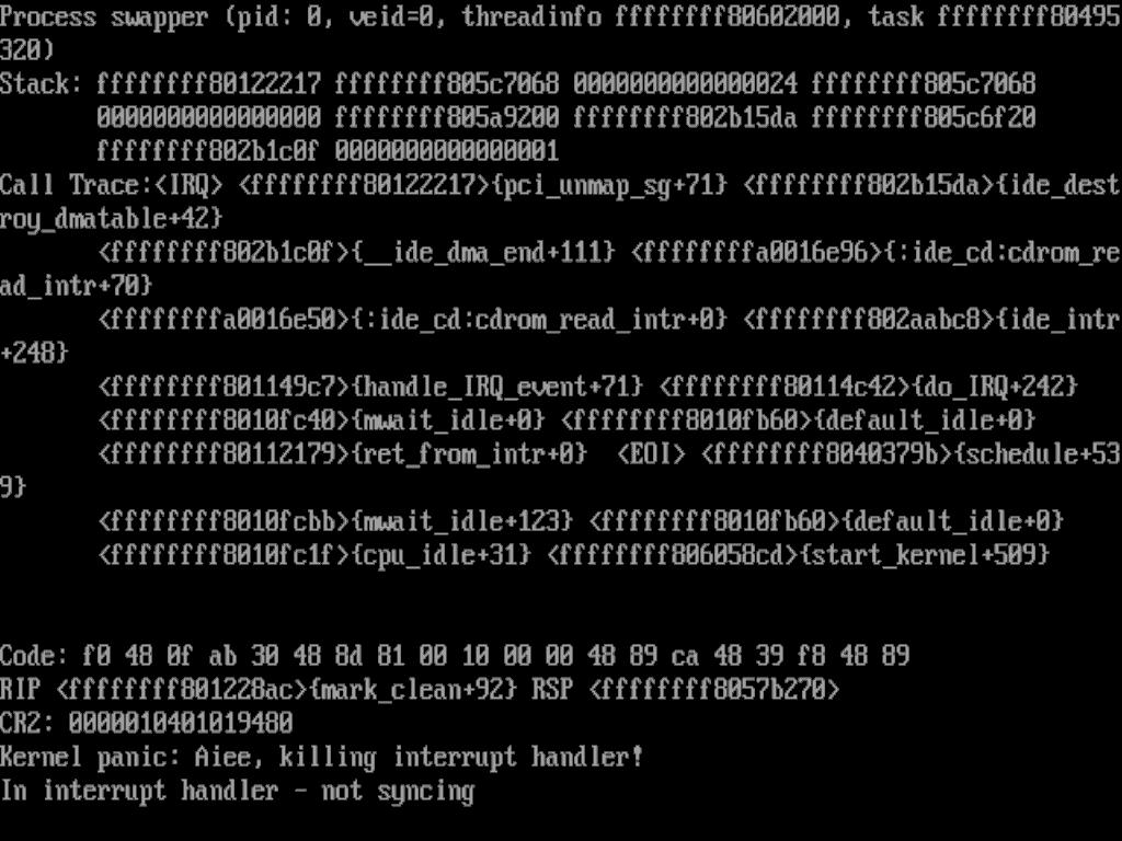 We installed a minimal CentOS 4.3 and got a kernel panic somewhere in /etc/rc.d/rc.sysinit (at least we think so) - maybe near mounting local file systems.