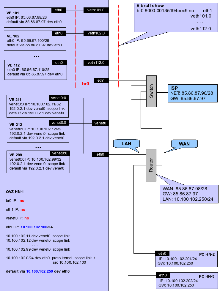 http://wiki.openvz.org/Using_private_IPs_for_Hardware_Nodes# Resulting_OpenVZ_Node_configuration