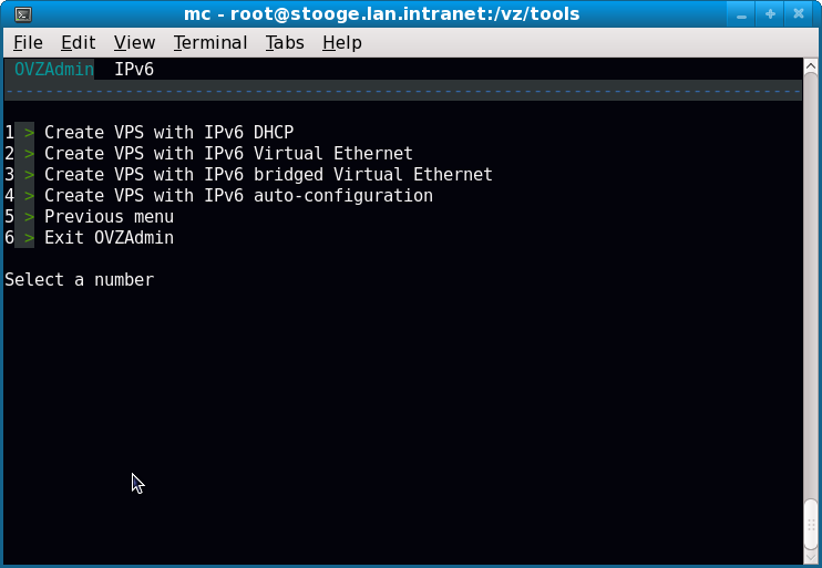 I wrote an ANSI terminal-based menu-system for administering OVZ containers,some time back.