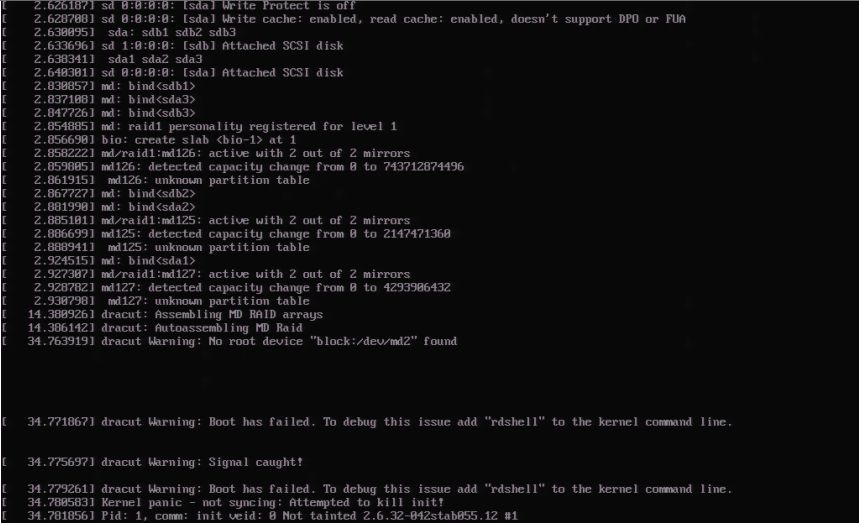 Home » General » Support » after install openvz u. centos 6.2 server won't reboot - raid1, initramfs, dracut, kernel problem? (after install of openvz under centos 6.2 server won't reboot - as it looks with raid1 OR initramfs OR dracut OR kernel panic problem (?).)