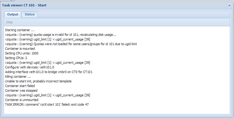 So, I go to /vz/template/cache and extract said template, then copy /usr/sbin/init over in an attempt to fix. No go. Any thoughts?