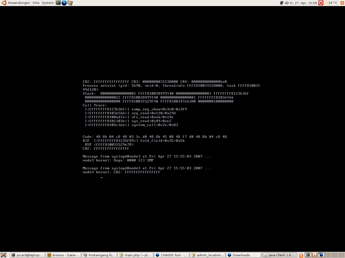 Kernel panic with 2.6.20 on x86_64 (CentOS 4.4) [message #12445] Sat, 28 April 2007 10:45 Go to next message