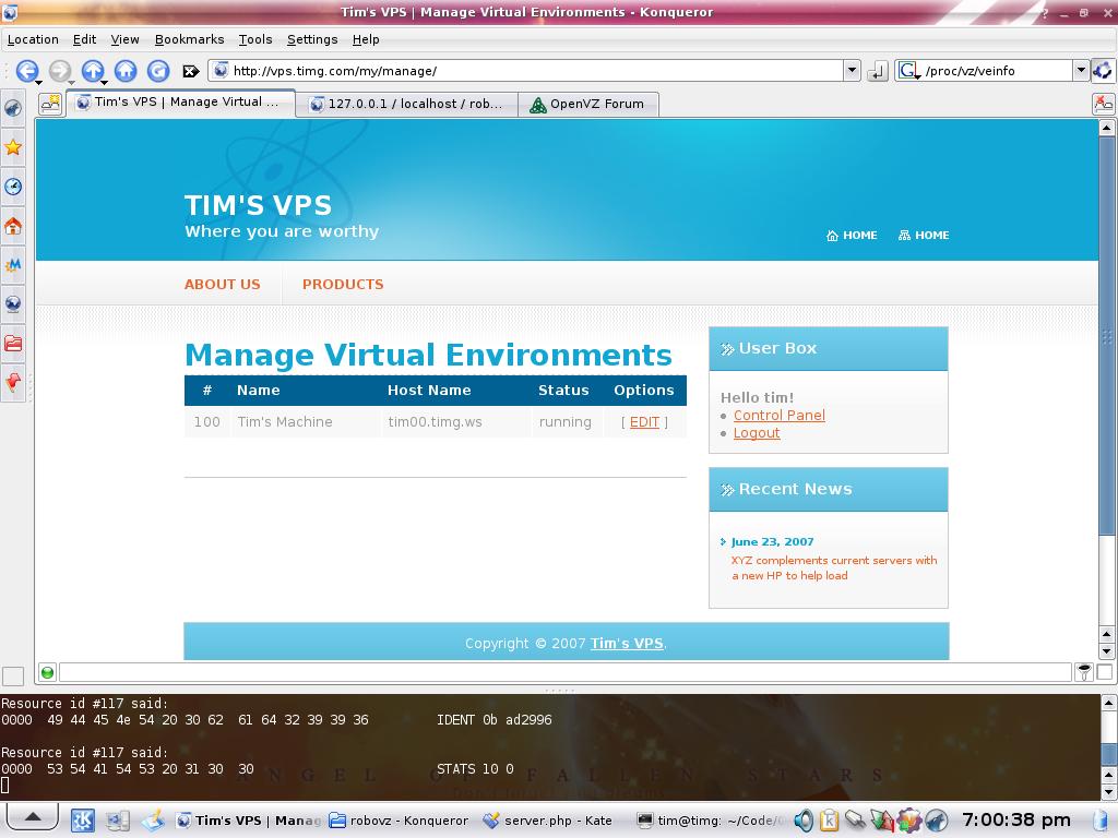 I am working on an OpenVZ web interface, so that customers can register with me and have a schweet interface to manage their virtual machines.